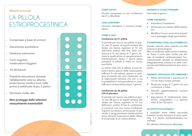 Troverete inoltre le pagine con le domande frequenti e gli effetti collaterali della contraccezione.