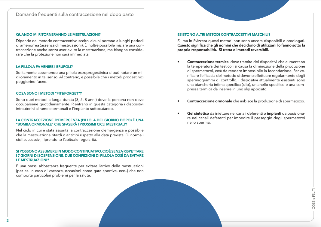 Per una consulenza personalizzata, per discutere di eventuali effetti collaterali o rischi (in particolare legati ai metodi ormonali), e per la prescrizione quando necessaria, vi invitiamo a rivolgervi a un* professionista della salute (CoSS, ginecologa/o, ecc.).